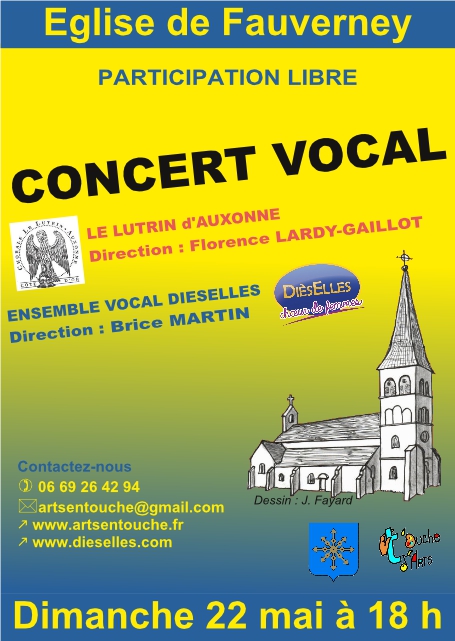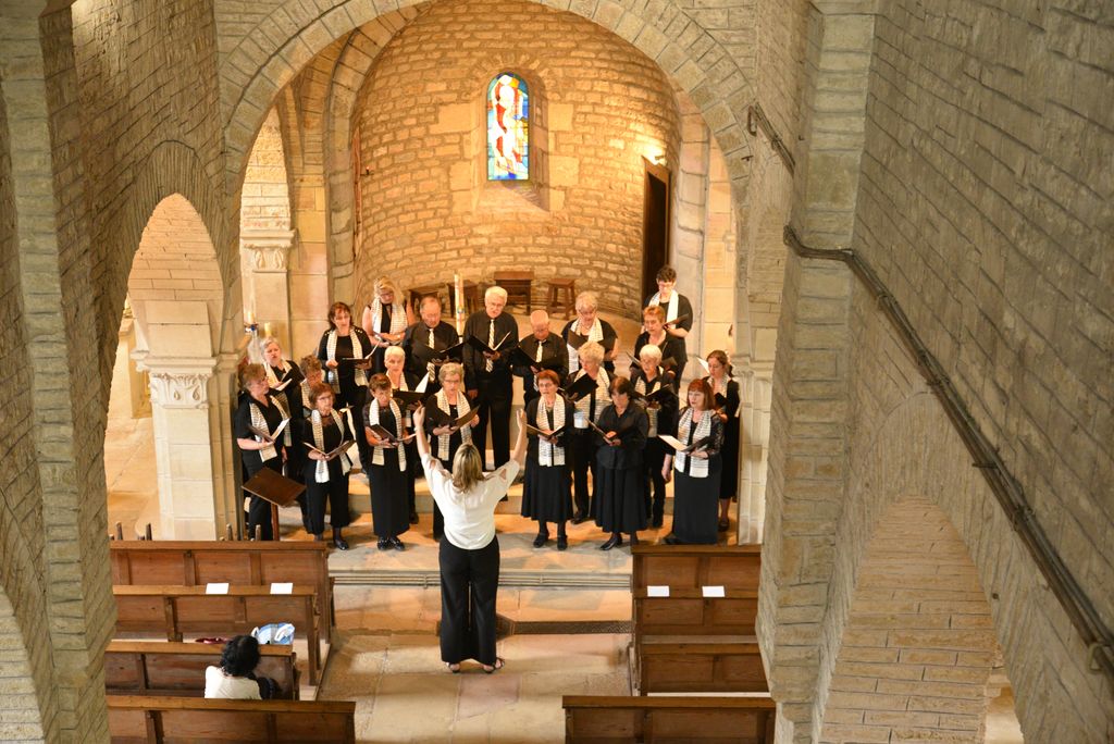 Le 22 mai à l’invitation de l’association t’Ouche d’Arts, nous faisions notre « concert-retour » avec le Lutrin d’Auxonne à Fauverney. 18 h à l’église, devant un nombreux public et dans une ambiance conviviale, les deux chorales ont déroulé leurs répertoires et chanté en commun un gaudeamus hodie fraternel. |